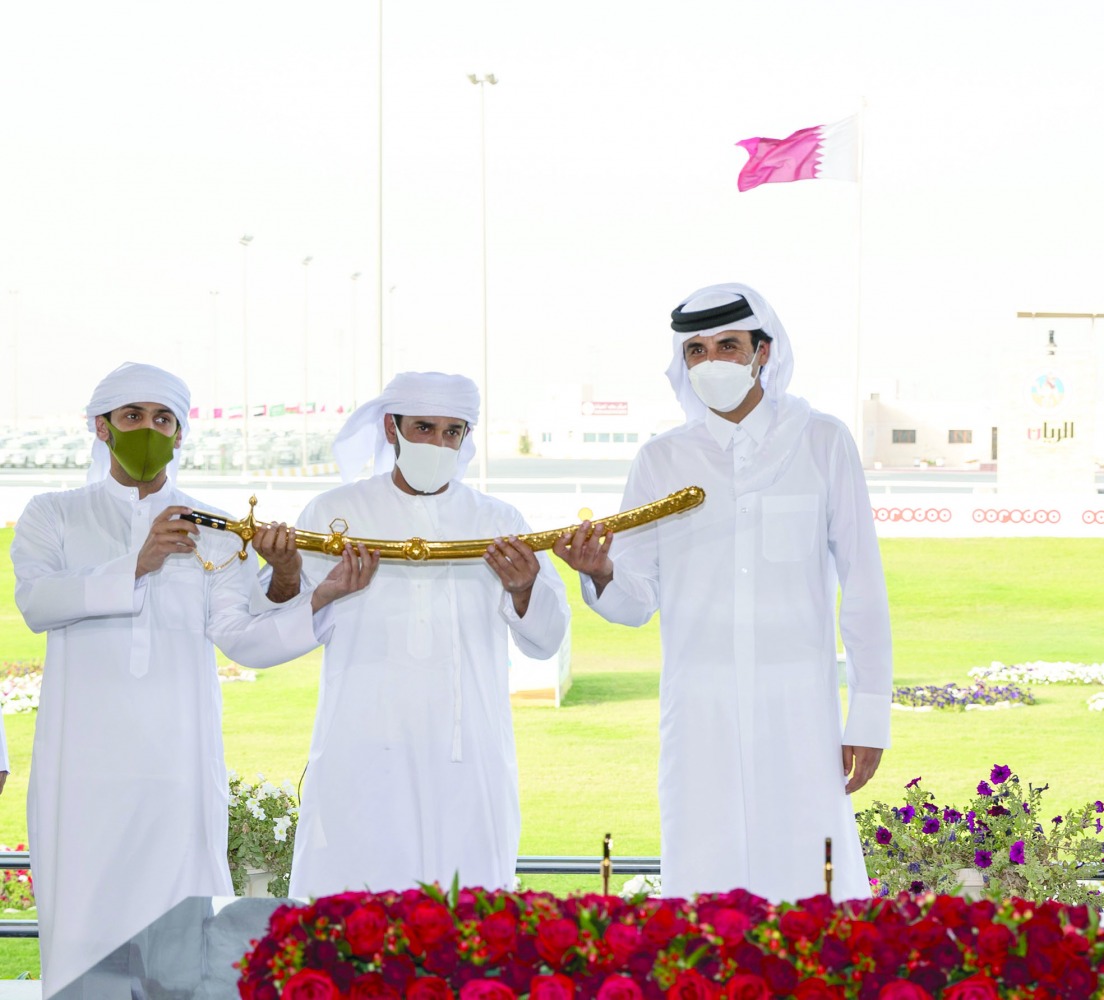 شهد حضرة صاحب السمو الشيخ تميم بن حمد آل ثاني أمير البلاد المفدى، الأشواط الأربعة الختامية في المهرجان السنوي لسباق الهجن العربية الأصيلة على سيف سموه للموسم 2020-2021، التي أقيمت بمضمار الشيحانية عصر أمس.