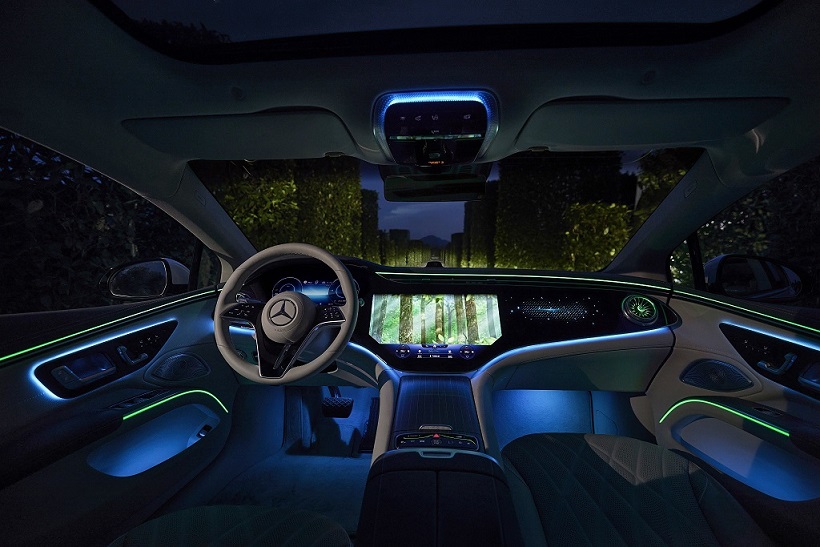 مع شاشة العرض الفائقة MBUX Hyperscreenفي EQS الجديدة ، ستكون محاط فعليًا بالفخامة المتقدمة. يمتد نظام MBUX Hyperscreen الجديد على كامل عرض لوحة العدادات. كما يوجد خلف الزجاج الأنيق شاشة عرض LCD للسائق ووسائط مركزية وشاشة للركاب بتقنية OLED الأكثر حداثة.
