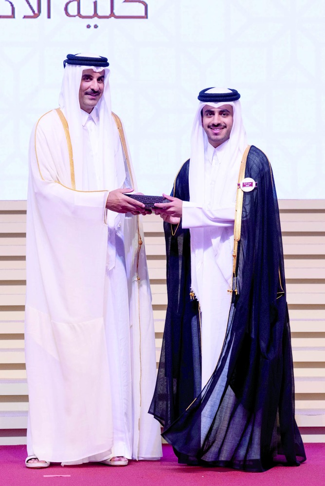 تفضل حضرة صاحب السمو الشيخ تميم بن حمد آل ثاني أمير البلاد المفدى، فشمل برعايته الكريمة حفل تخريج الدفعة السابعة والأربعين «دفعة 2024» من طلاب جامعة قطر، الذي أقيم بمجمع الرياضة والفعاليات في الجامعة صباح أمس.