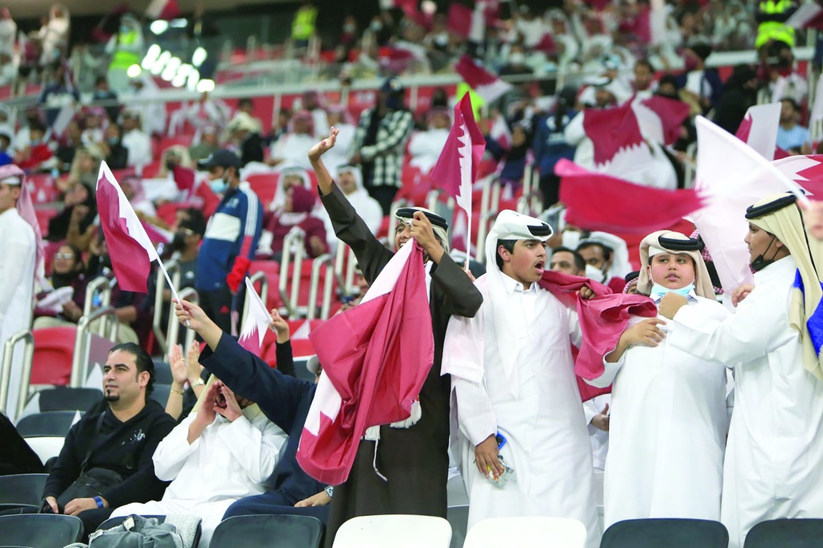 مع بداية دخول نجوم منتخبنا أرضية ملعب استاد البيت قامت جماهير العنابي بتحية منتخبنا بشكل رائع تقديراً لما قدمه العنابي من مستوى خلال منافسات المجموعة الأولى وكان استقبالا حافلا للأبطال على ما قدموه.