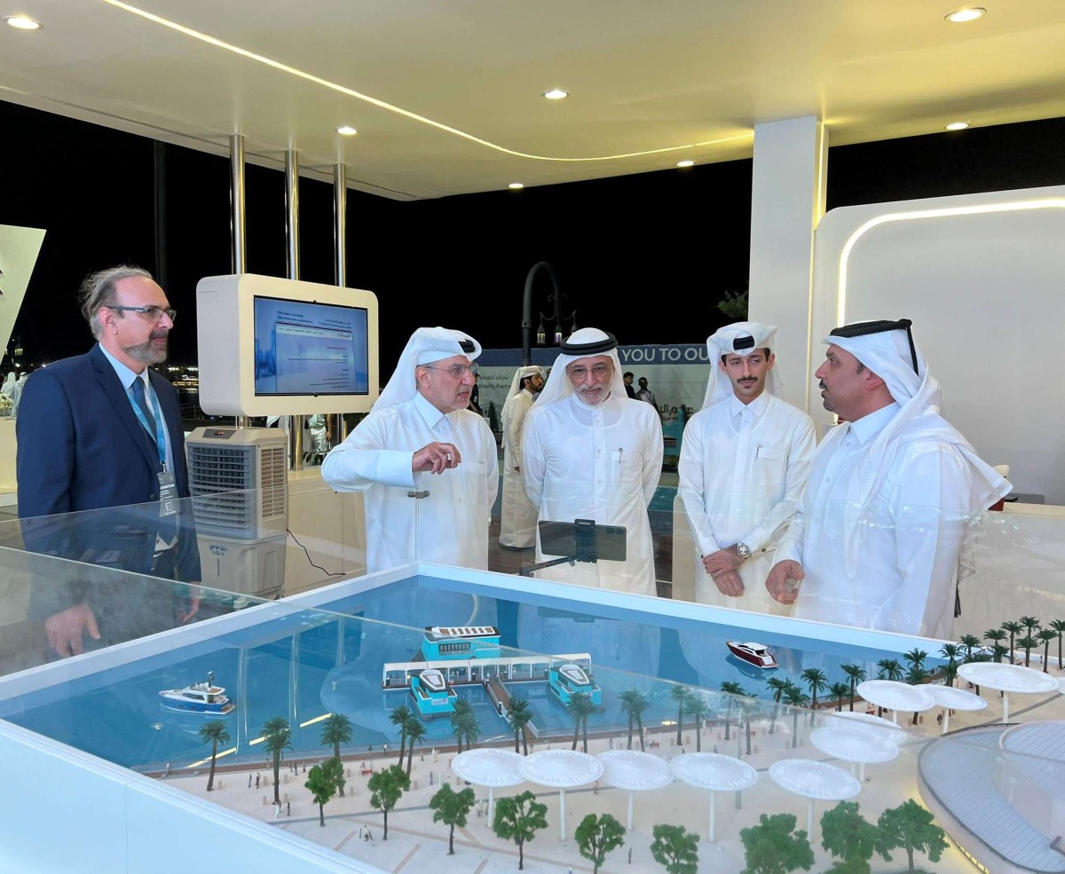 واستعرضت الوزارة بجناحها في المعرض مجسماً خاصاً بالمحطة الرئيسية في لوسيل، بالإضافة إلى تقديم عرض مرئي يوضح المرافق الخاصة بهذا المشروع الرائد الذي يهدف إلى توفير أنظمة نقل عام مائية حديثة مزودة بأحدث التكنولوجيا الصديقة للبيئة، بالإضافة إلى تعزيز التكامل مع أنظمة النقل العام الأخرى في نقل الركاب (من وإلى) الوجهات المختلفة إذ من المقرر ربط هذا المشروع عند بدء العمليات التشغيلية الخاصة به مع منظومة صلة للنقل العام، بما يتوافق مع إطار عمل الوزارة في تحقيق أهداف استراتيجية التنمية الوطنية الثالثة التي تركز على تسخير التكنولوجيا المتقدمة والتنمية المستدامة والتنوع الاقتصادي، وصولاً إلى تنفيذ ركائز رؤية قطر الوطنية 2030. وتمتد محطة النقل المائي الرئيسية في مدينة لوسيل على مساحة تتجاوز 2200 متر مربع، وتحتوي على العائم المائي المزود بالشواحن الكهربائية اللازمة لشحن العبارات والمصمم لرسو أربع عبارات مائية بطول 24 مترا للعبارة الواحدة، كما تضم أيضاً منطقة خاصة بالانتظار، ومرفقا للتذاكر، فضلاً عن المرافق الخدمية المتنوعة كالمساحات المخصصة للبيع بالتجزئة والمكاتب، فيما يحتوي موقفا العبارات البحرية في جزيرة اللؤلؤة والكورنيش، على العائم المائي، ومكاتب خاصة بالتذاكر وخدمة العملاء.