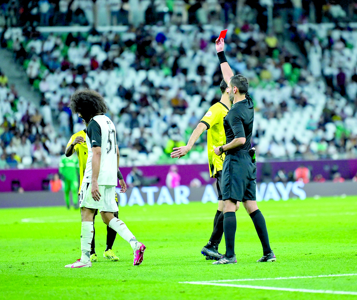 مع بداية الشوط الثاني الإضافي تعرض نجم السد اكرم عفيف للطرد بعد ان قام بركل لاعب قطر المحترف البرازيلي تاباتا وقام الحكم بإشهار البطاقة الصفراء قبل ان يتدخل الفار ومطالبة الحكم سلمان الفلاحي بمراجعة الفار ومن خلالها قرر الفلاحي سحب البطاقة الصفراء وإشهار البطاقة الحمراء.